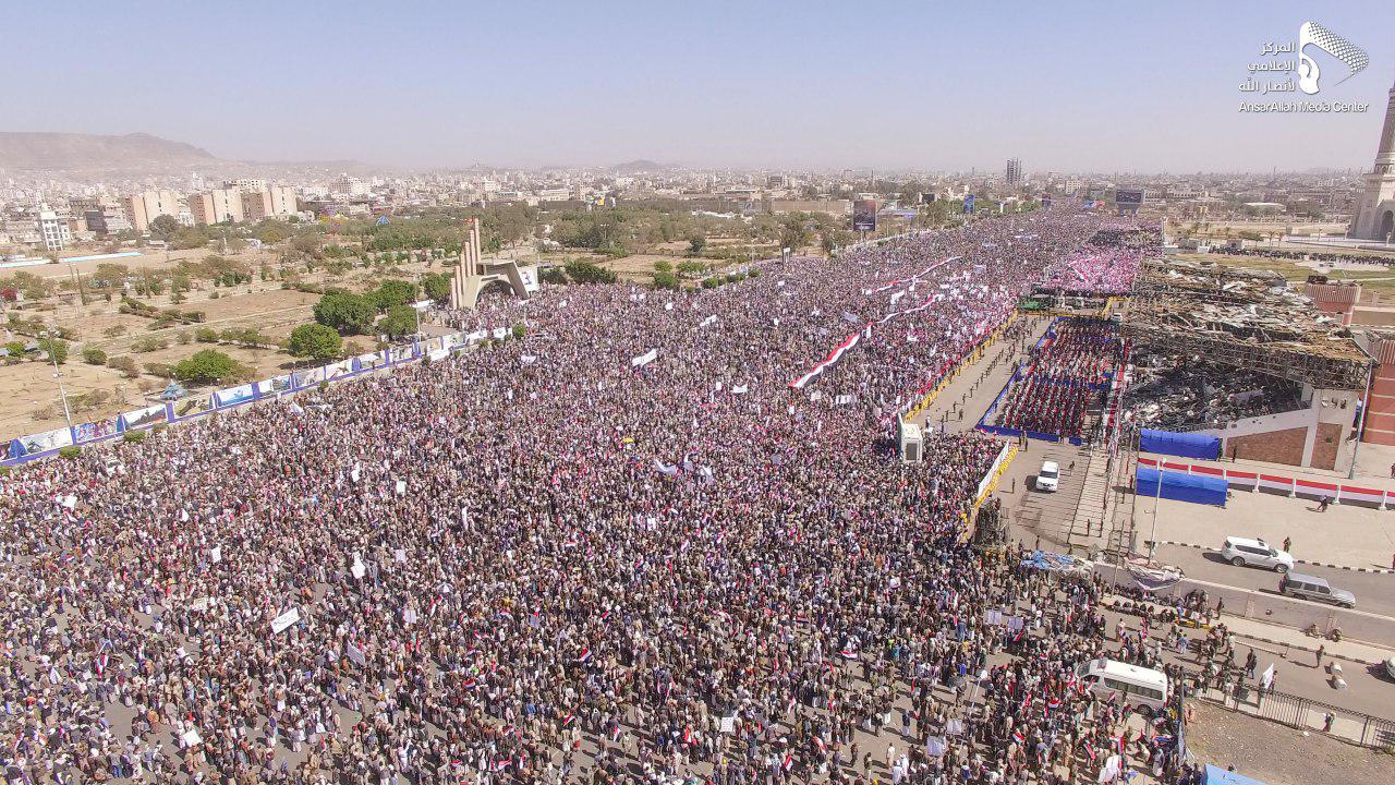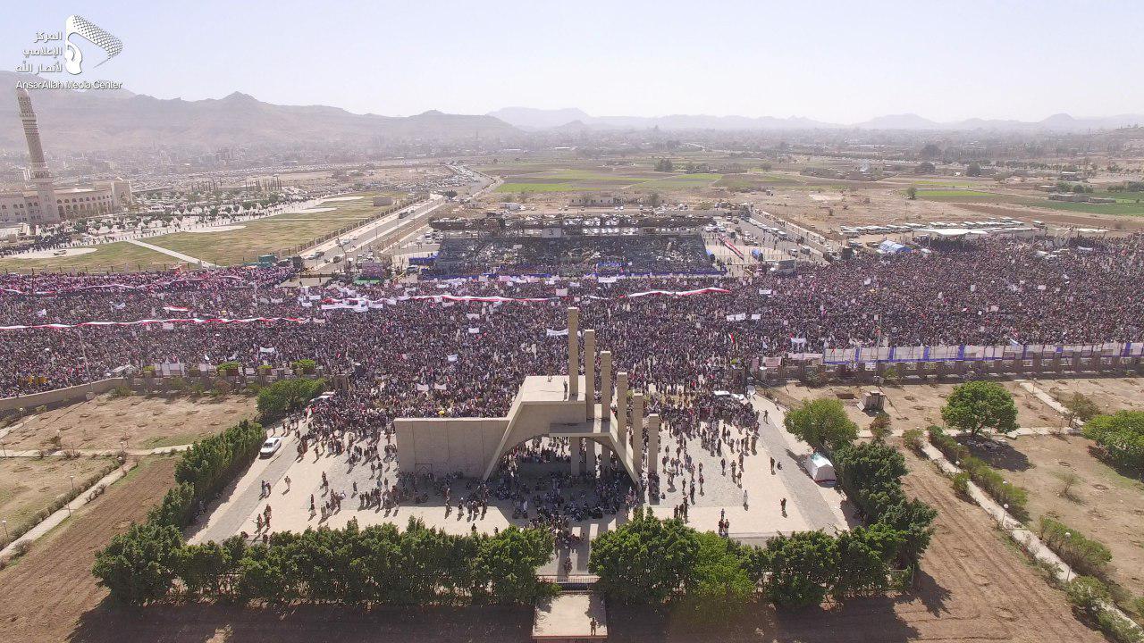 واحتشد مئات الآلاف من ابناء الشعب اليمني من العاصمة والمحافظات اليمنية إلى ميدان السبعين، ورغم أن عملية التحشيد شهدت أكبر حرب نفسية وإعلامية من قبل وسائل الإعلام السعودية والإماراتية التي بثت أخباراً غامضة عن توقعات بوقوع أحداث مفاجئة داخل العاصمة صنعاء