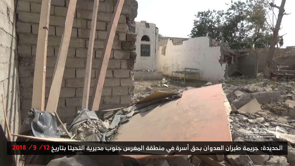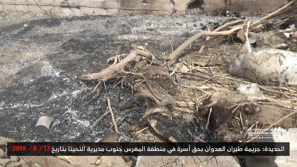 استمراراً في ارتكاب الجرائم الوحشية في اليمن اثر الغارات الهيستيرية التي تشنها طائرات تحالف الحرب والتي اشتدت أكثر وأكثر خلال يوم أمس في محافظة الحديدة بعد ارتكابهم لمجزرة بحق المواطنين في كيلو16 والتي لم يكتفوا بذلك ليقوموا بشن غارات أخرى على منازل المواطنين وشاحنات المواطنين